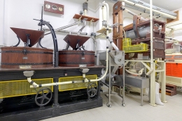 For the other flours, we use a small mill from the mid-1900s. In this mill there are several opposing rollers that break and crush the wheat grains thanks to their high speed rotation.